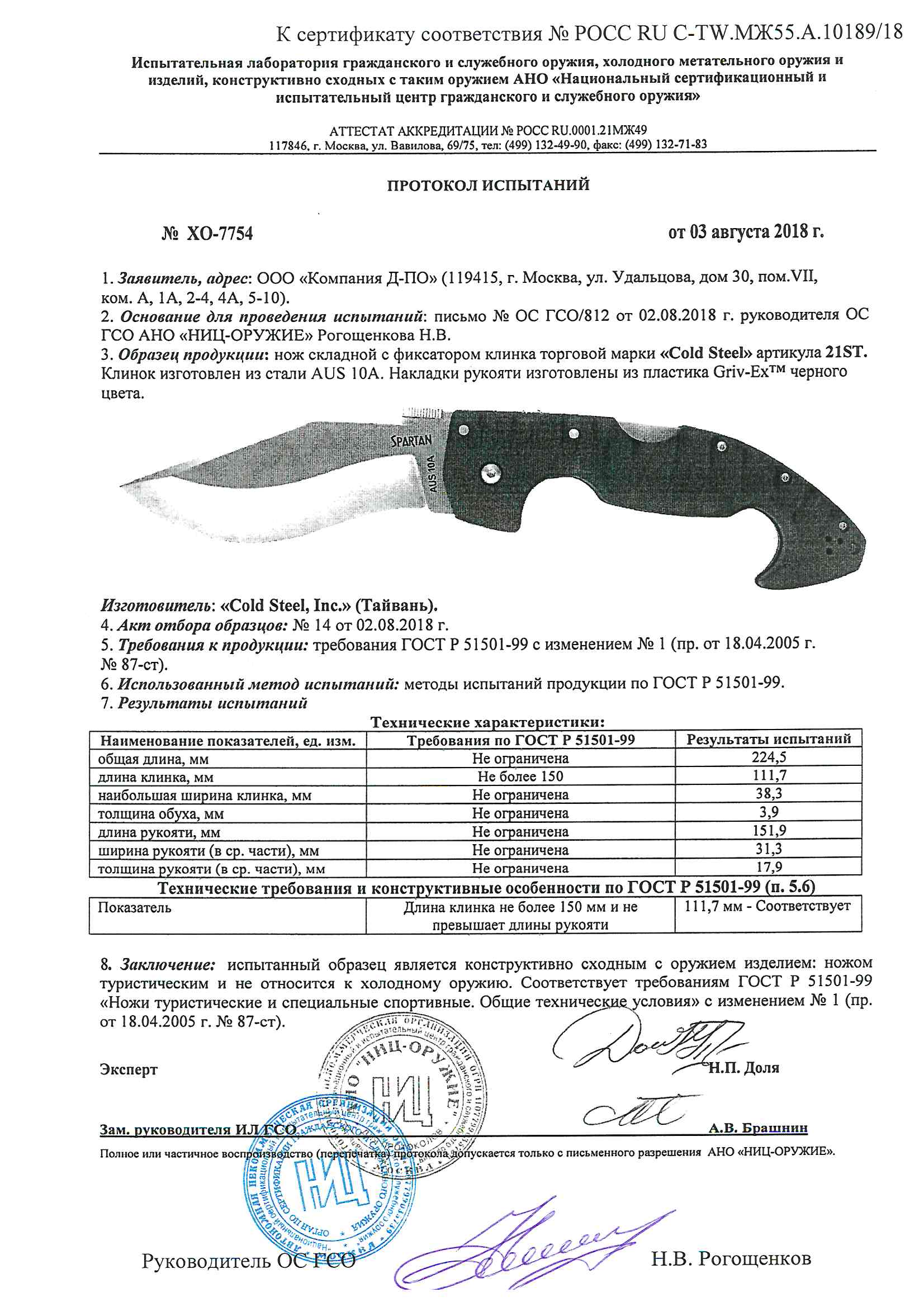 • Конструкция ножа: Складной