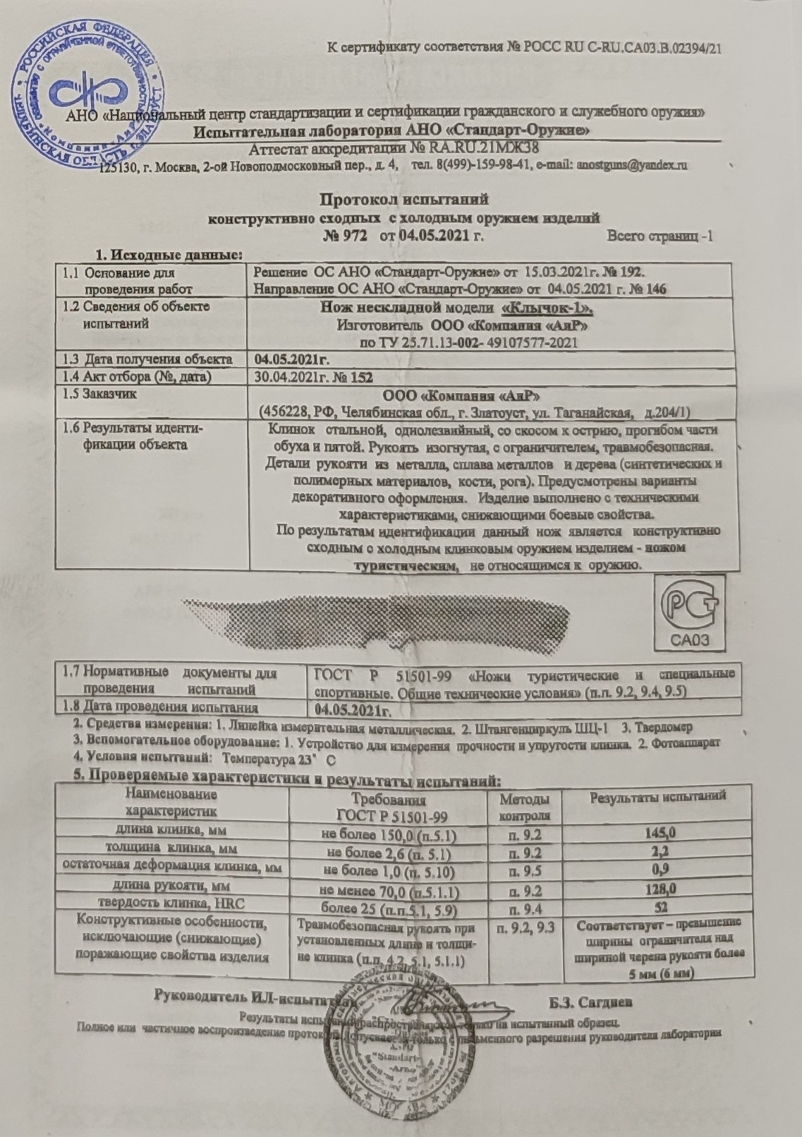 • Конструкция ножа: С фиксированным клинком